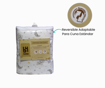 Este edredón reversible para cuna está diseñado para ofrecer a tu bebé el máximo confort y estilo. Con dos opciones de diseño en un solo producto, podrás elegir el que mejor se adapte a la decoración de la habitación. Su tamaño es perfecto para una cuna estándar, asegurando un ajuste ideal y una cobertura completa.