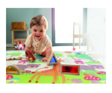 La alfombra Born es el complemento perfecto para añadir confort y encanto a cualquier espacio infantil. Su diseño está pensado para brindar una superficie segura y cómoda donde los bebés y niños puedan jugar, descansar o explorar sin preocupaciones.