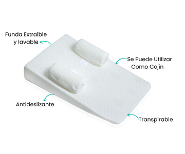 - La forma de las almohadas limita la posibilidad de rodar sobre el estómago y evita la regurgitación y el atragantamiento durante el sueño.