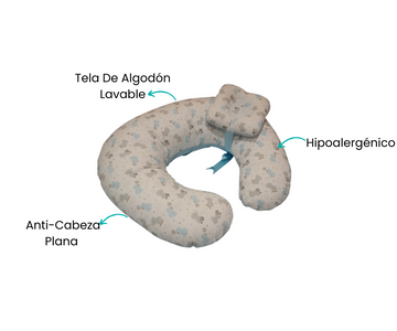 Fabricada con materiales hipoalergénicos y fundas lavables, garantiza la máxima higiene y cuidado. Esta almohada también es ideal para acompañar el crecimiento del bebé, usándola como soporte durante el aprendizaje de sentarse o para disfrutar de momentos de juego.