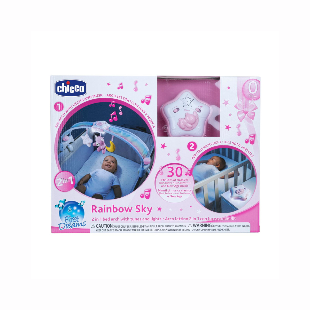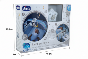 Rainbow Sky está diseñado para crear un espacio de descanso lleno de calma, luz suave y armonía, ideal para recién nacidos que necesitan un entorno acogedor para dormir. Sus colores tipo arcoíris y melodías tranquilas ayudan al bebé a relajarse y entrar en un sueño profundo. Es perfecto para acompañar las rutinas nocturnas y convertir la habitación en un refugio seguro lleno de ternura.