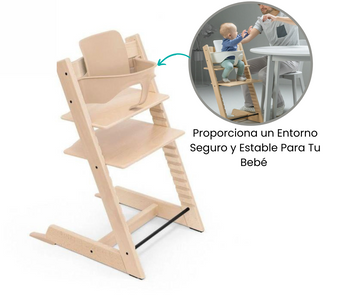 El Baby Set está diseñado pensando en la seguridad en cada detalle. Con su respaldo alto y la barra de sujeción que incorpora una correa de entrepierna, proporciona un entorno seguro y estable para que tu bebé se siente en la mesa, a la altura de los adultos. Esto fomenta la participación activa en las comidas familiares y el desarrollo de habilidades sociales desde una edad temprana.