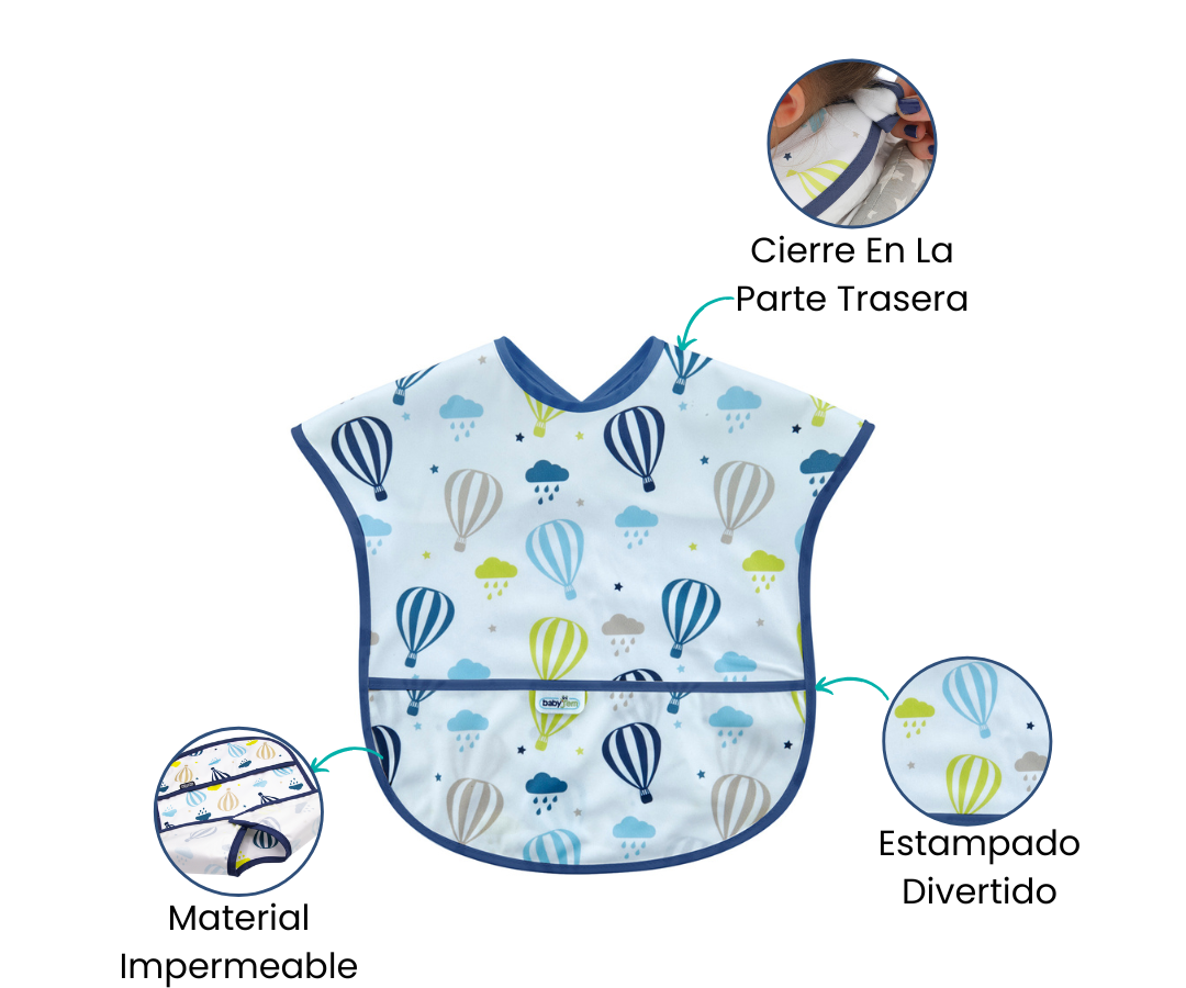 Fabricado con materiales suaves y resistentes al agua, este babero es fácil de limpiar y muy cómodo de llevar. Su diseño y ajuste en la espalda asegura una protección total. Además, su estampado de aguacates añade un toque divertido y moderno a cada comida
