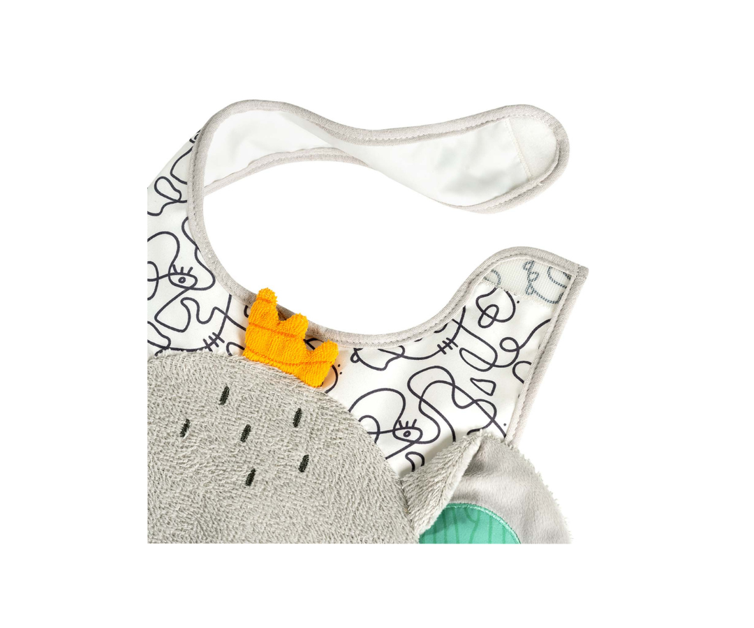 Este tierno babero de rizo gris en forma de elefante combina funcionalidad y encanto en cada uso. Su suave material protege eficazmente la ropa del bebé durante las comidas, evitando manchas y suciedad. El diseño ergonómico asegura comodidad y facilidad al colocarlo.