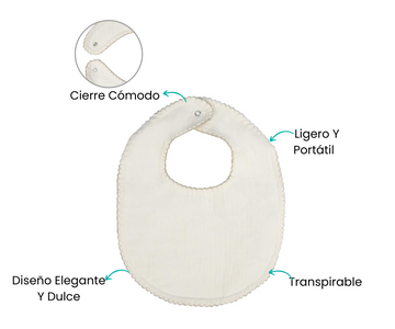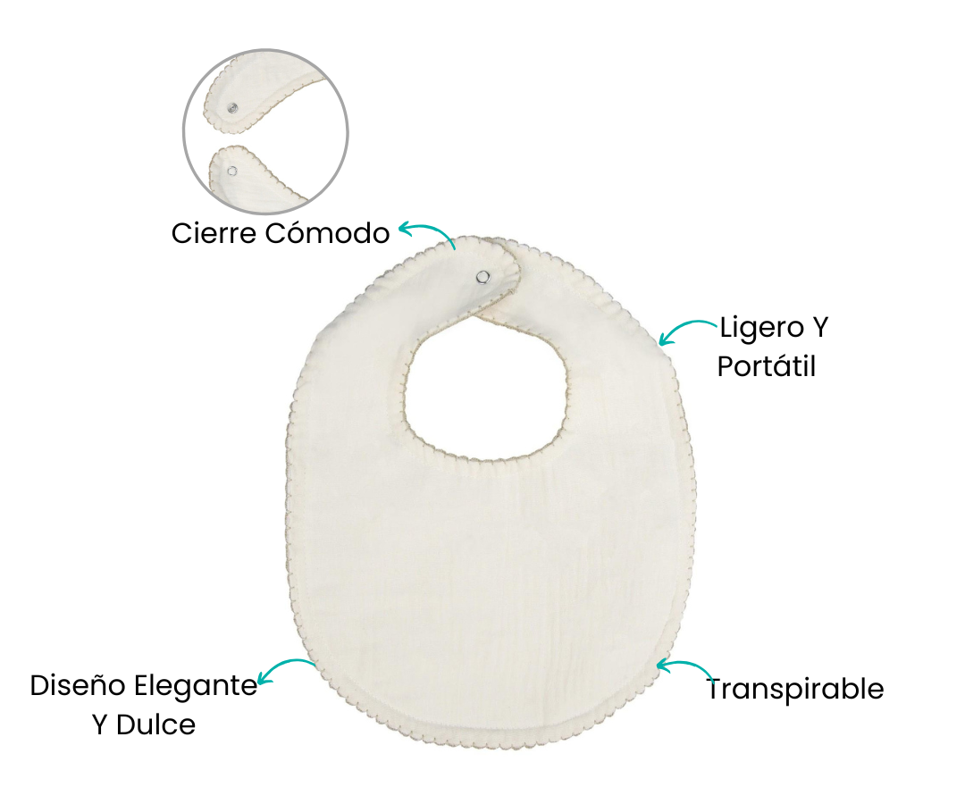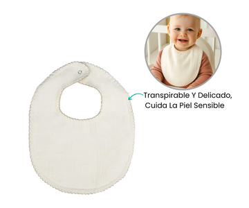 Gracias a su estructura transpirable, este babero de muselina no irrita la piel sensible de tu bebé, garantizando una experiencia suave y agradable. Proporciona comodidad durante las comidas, evitando incomodidades y roces. Su diseño práctico lo convierte en un aliado indispensable para el día a día. Ideal para proteger con delicadeza y estilo.