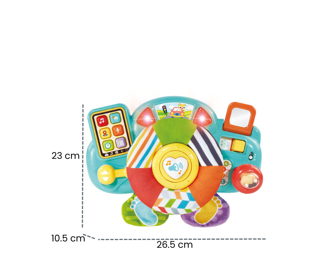 Convierte cada paseo en una aventura inolvidable con este volante interactivo diseñado especialmente para bebés a partir de 6 meses. Mientras el pequeño juega a ser conductor, desarrolla la imaginación, la coordinación y la exploración, todo en un formato seguro, resistente y lleno de color. Un juguete perfecto tanto para la casa como para acompañar en los trayectos diarios.