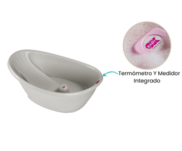 La bañera Bella cuenta con un termómetro integrado que permite medir la temperatura del agua, asegurando un baño cómodo y seguro para tu bebé. Además, incluye un indicador de la cantidad óptima de agua, evitando el riesgo de sobrellenar la bañera. Esta característica práctica y fácil de usar proporciona tranquilidad a los padres al garantizar que el agua esté en la temperatura perfecta y en la cantidad adecuada.