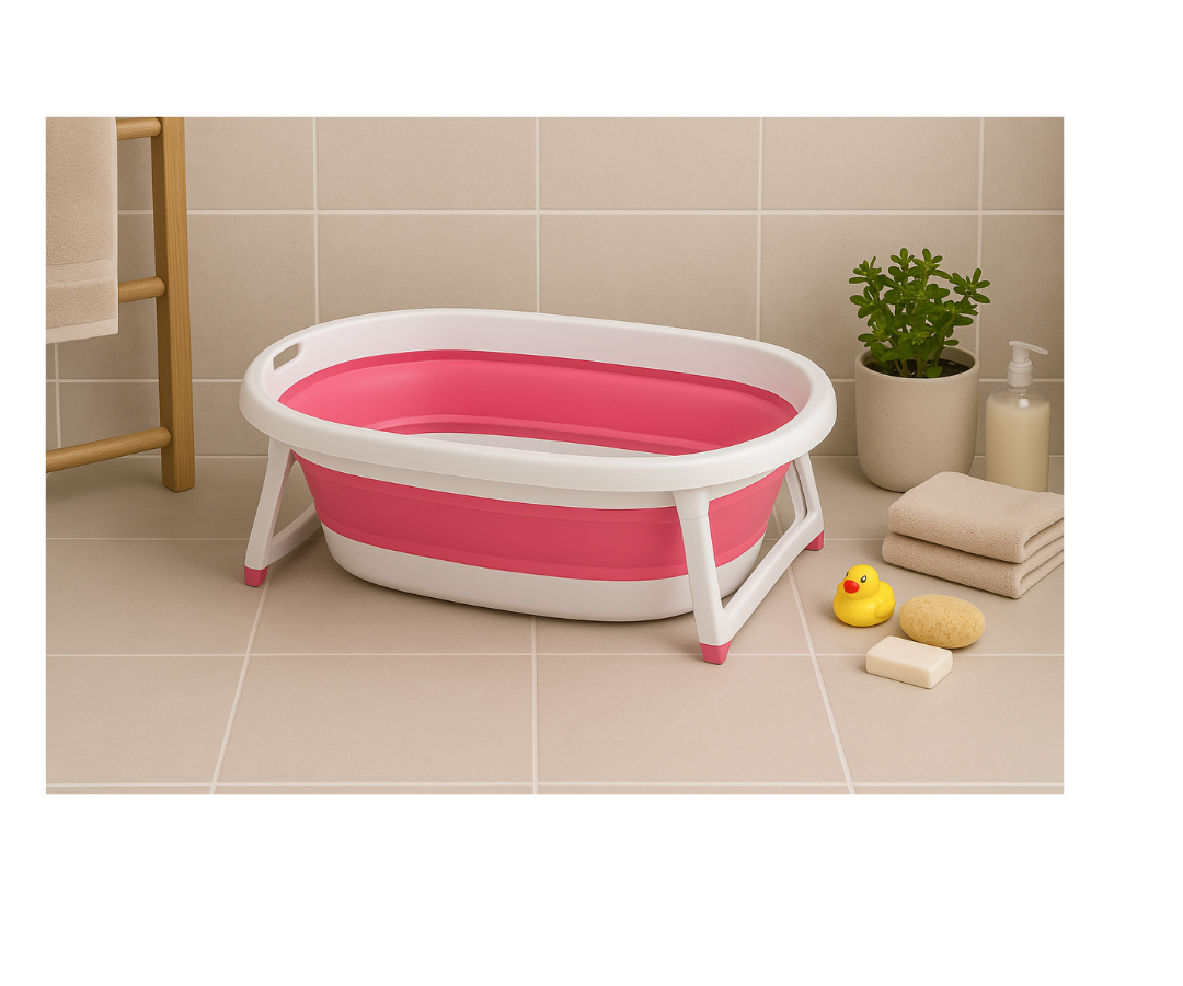 Esta bañera cuenta con un tapón termosensible que cambia de color cuando el agua supera los 37 °C, ayudando a los padres a mantener la temperatura ideal para el bebé. Su sistema plegable permite reducir su tamaño al mínimo, facilitando el guardado en espacios pequeños y haciendo que sea perfecta para transportar en viajes o visitas familiares.
