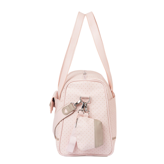 Este bolso está diseñado para llevar de manera organizada los accesorios indispensables del bebé, ofreciendo comodidad y funcionalidad durante salidas o viajes. Su interior amplio, junto con el portachupete a juego, permite acceder rápidamente a lo necesario sin perder tiempo. Las asas para colgar en la sillita y la correa bandolera desmontable lo hacen versátil y fácil de usar en cualquier situación cotidiana.