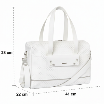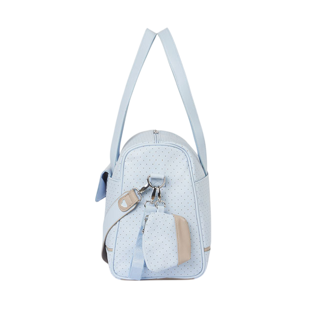 Este bolso está diseñado para llevar de manera organizada los accesorios indispensables del bebé, ofreciendo comodidad y funcionalidad durante salidas o viajes. Su interior amplio, junto con el portachupete a juego, permite acceder rápidamente a lo necesario sin perder tiempo. Las asas para colgar en la sillita y la correa bandolera desmontable lo hacen versátil y fácil de usar en cualquier situación cotidiana.