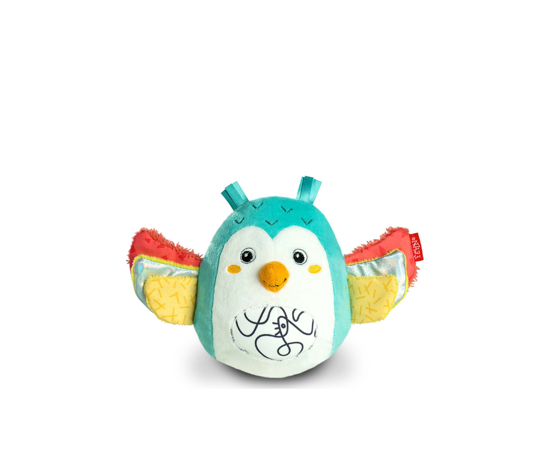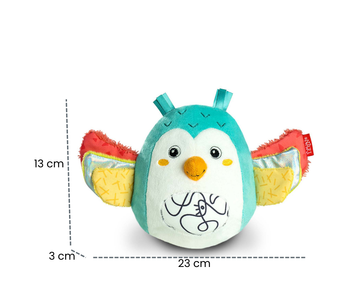 Este suave sonajero de peluche incluye múltiples elementos de actividad para captar la atención del bebé. La campana produce un delicado sonido que estimula la audición, mientras que el papel crujiente invita a explorar con el tacto. Ideal para fomentar la curiosidad y el desarrollo sensorial desde los primeros meses.