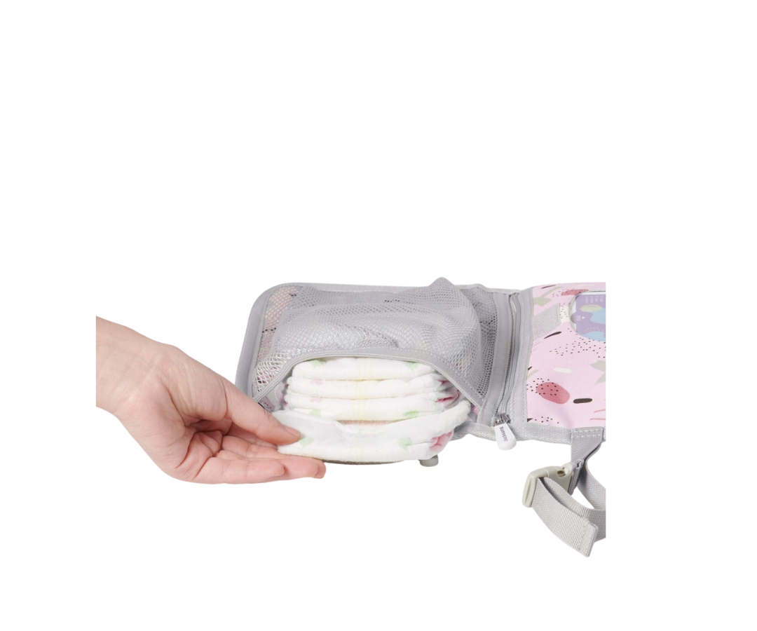 Este práctico cambiador portátil te brinda libertad absoluta gracias a su diseño manos libres. Incluye una correa desmontable para el hombro y un resistente clip para el cochecito. Úsalo como bolso, cuélgalo o llévalo en la mano según prefieras. Versátil, cómodo y siempre listo para acompañarte.