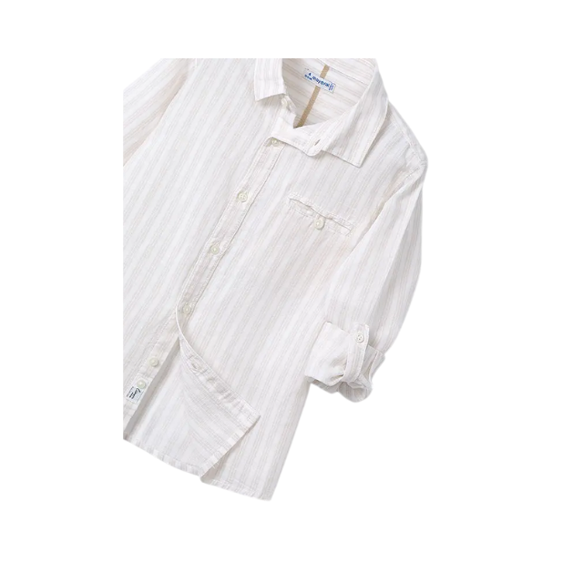 Diseñada para brindar libertad de movimiento, esta camisa ofrece una textura suave y ligera que se adapta a la piel del bebé. Su diseño práctico permite vestirlo fácilmente, mientras su estilo atemporal la convierte en una prenda versátil para diferentes ocasiones.