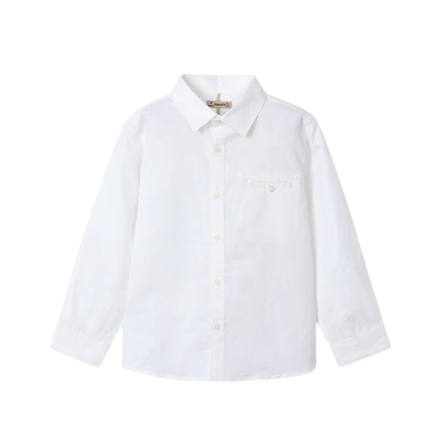 Diseñada para brindar libertad de movimiento, esta camisa ofrece una textura suave y ligera que se adapta a la piel del bebé. Su diseño práctico permite vestirlo fácilmente, mientras su estilo atemporal la convierte en una prenda versátil para diferentes ocasiones.