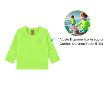 Protege a tu pequeño con estilo y comodidad con esta camiseta de playa de Up Baby. Diseñada para días soleados, está confeccionada con un tejido ligero y de secado rápido que garantiza frescura y libertad de movimiento. Su protección solar UPF 50+ cuida la delicada piel de tu bebé mientras juega bajo el sol.