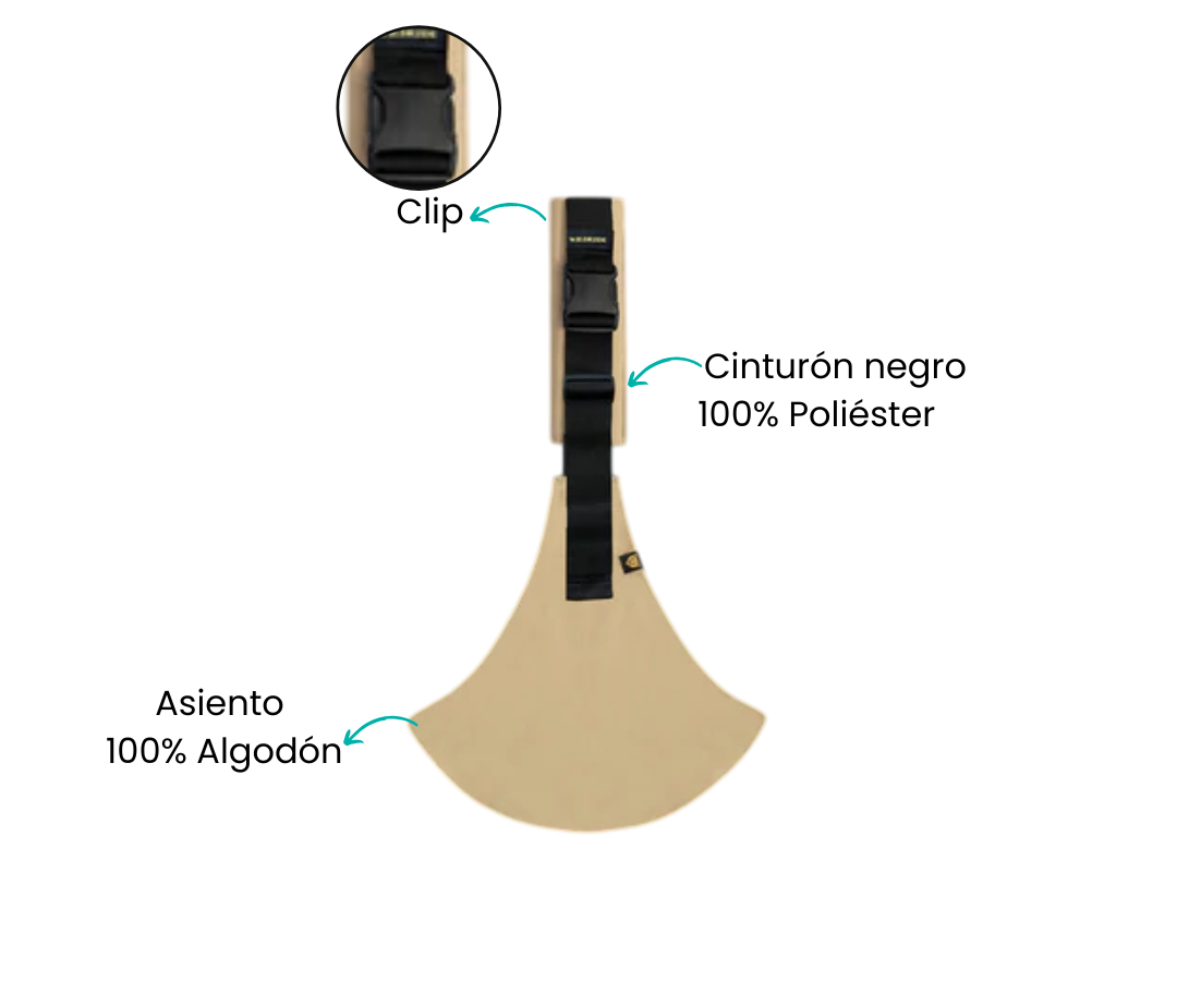 El portabebés Wildride en elegante color combina diseño moderno con materiales de alta calidad. Su confección en mezcla de algodón y poliéster garantiza comodidad tanto para el bebé como para el portador. Además, cuenta con una banda de nailon reforzada que brinda mayor seguridad y soporte.