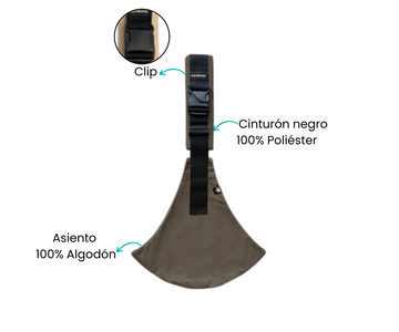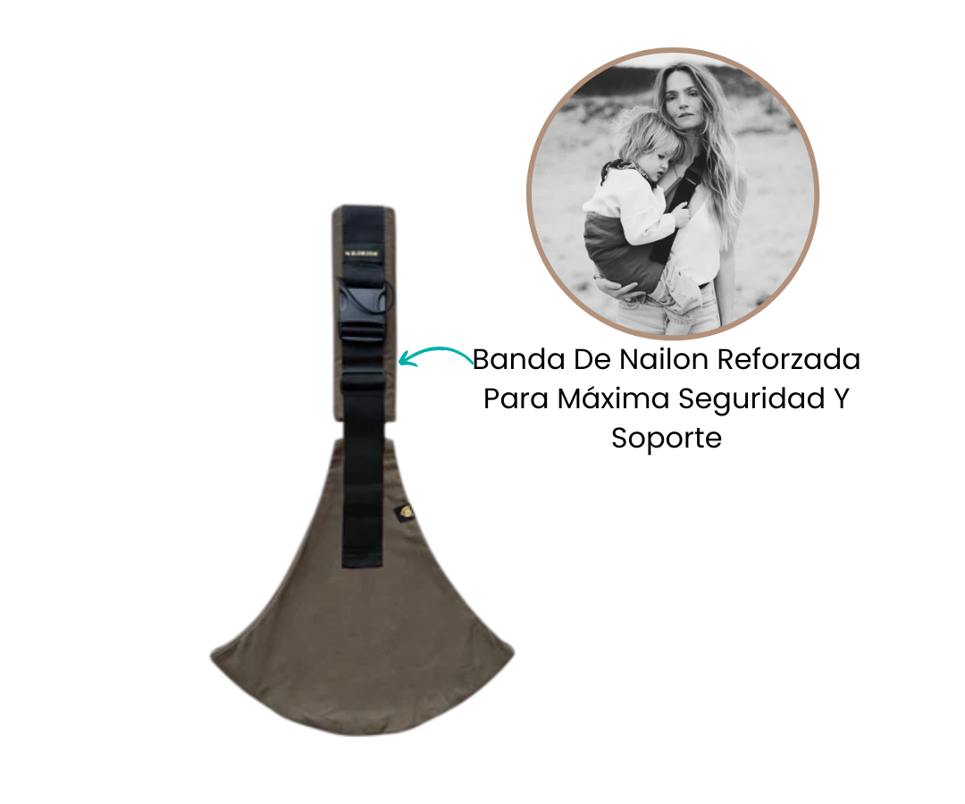 El portabebés Wildride en elegante color combina diseño moderno con materiales de alta calidad. Su confección en mezcla de algodón y poliéster garantiza comodidad tanto para el bebé como para el portador. Además, cuenta con una banda de nailon reforzada que brinda mayor seguridad y soporte.