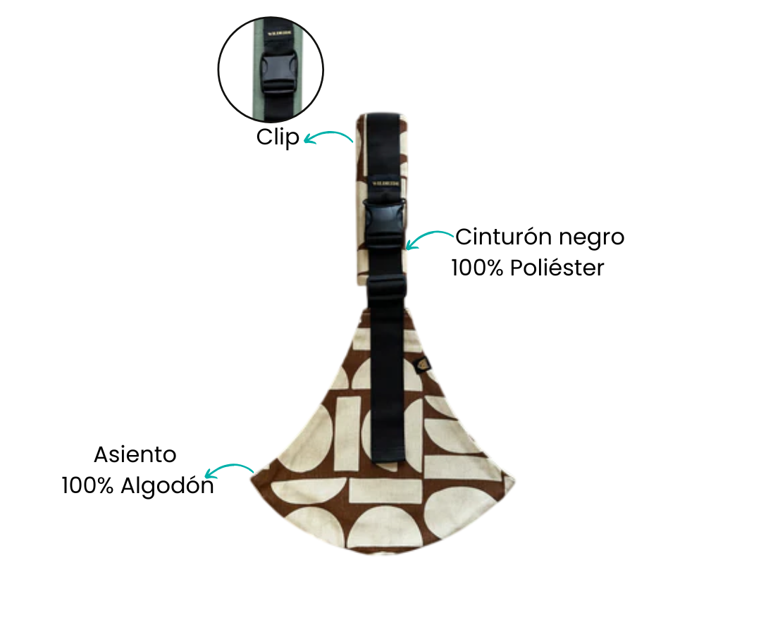El portabebés Wildride en elegante color combina diseño moderno con materiales de alta calidad. Su confección en mezcla de algodón y poliéster garantiza comodidad tanto para el bebé como para el portador. Además, cuenta con una banda de nailon reforzada que brinda mayor seguridad y soporte.