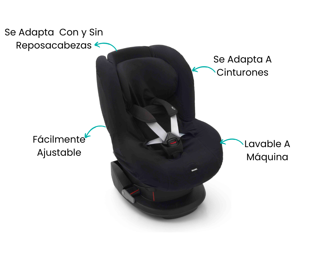 - Se adapta a los asientos de coche con y sin reposacabezas.