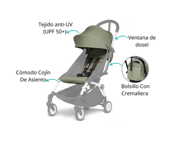 - Capota de protección solar UPF 50+ con ventana peekaboo.