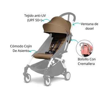 - Capota de protección solar UPF 50+ con ventana peekaboo.