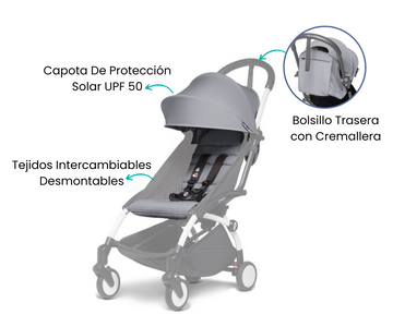 Explora la versatilidad con los textiles de YOYO, que ofrecen una gama de colores para cada ocasión. Cambiar y lavar es sencillo, proporcionando frescura y estilo a tu cochecito. Además, disfruta de un acolchado especial para el coche YOYO, brindando comodidad adicional a tu pequeño durante los paseos.