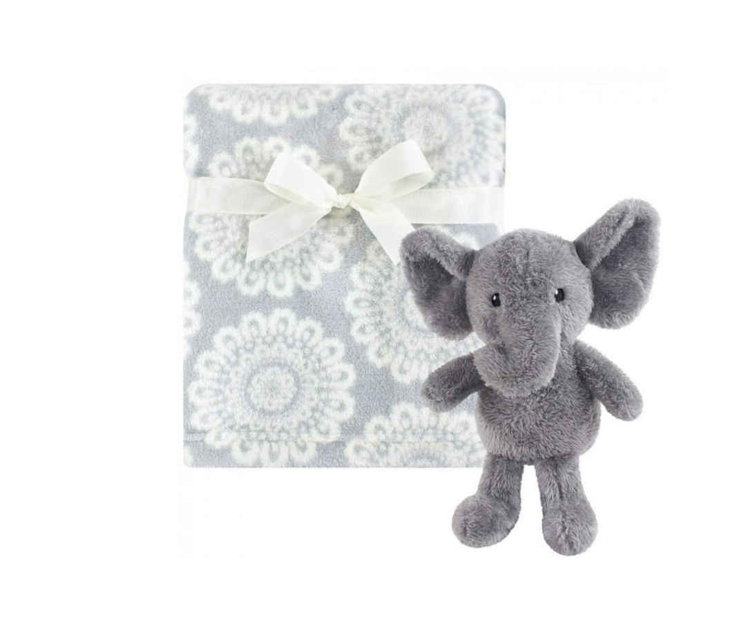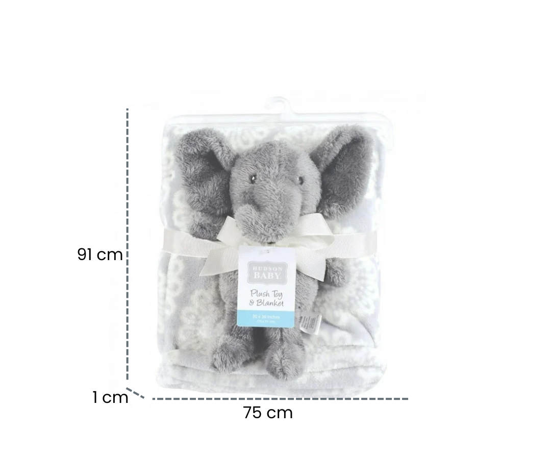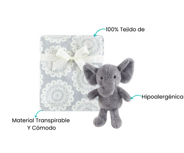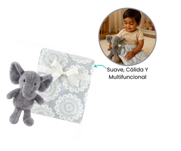 El adorable elefante de peluche acompaña y reconforta a tu bebé en todo momento.La manta de felpa, de generosas dimensiones es perfecta para envolver, cubrir o usar en el cochecito.