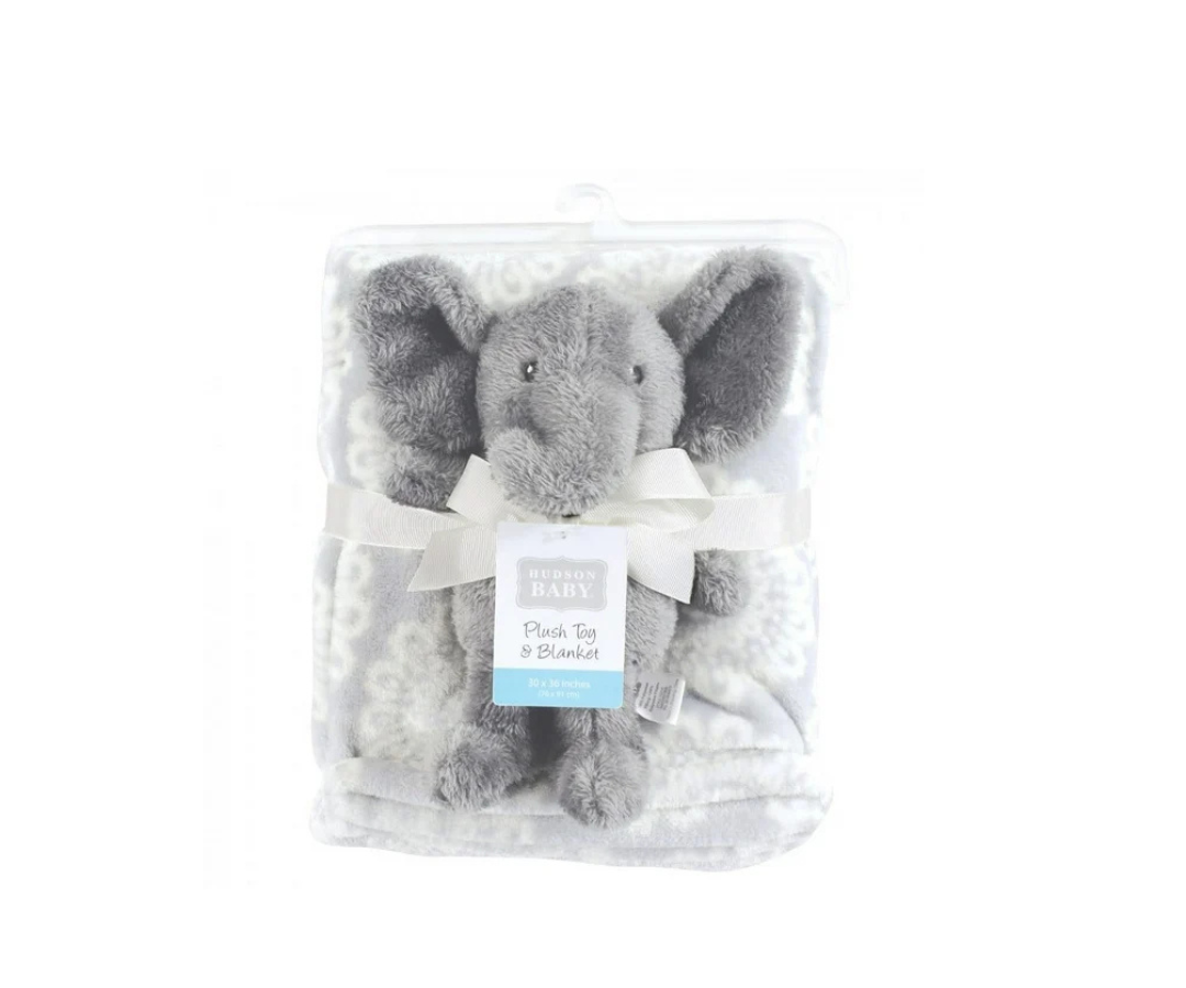 Cobija De Plush De Seguridad | Blanco Gris Elefante Hudson Baby