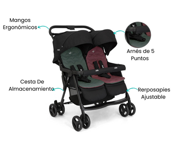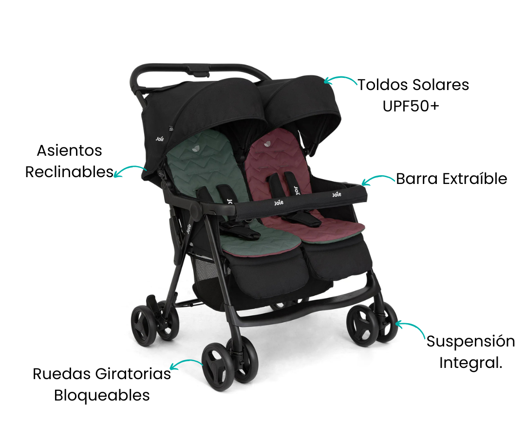 El Coche Duo Aire Twin W/ RC Shale es un cochecito doble liviano con diseño versátil que se adapta a las necesidades de cada niño. Sus dos asientos personalizables ofrecen espacio y confort individual, ideal para hermanos que no siempre se ponen de acuerdo. Su estructura ligera facilita el manejo en cualquier terreno, brindando a los padres practicidad y a los pequeños comodidad en cada paseo.