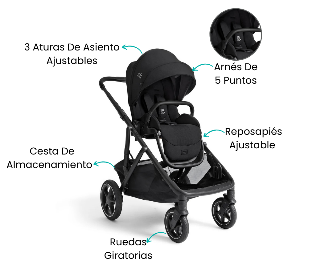 Disfruta de más de 20 modos diferentes que se adaptan al crecimiento y necesidades de tu bebé. Los asientos permiten que los pequeños viajen mirando hacia ti o descubran el mundo frente a ellos. Además, ofrece compatibilidad con cunas de transporte, portabebés y cunas para automóvil (se venden por separado). Una solución completa y flexible para cada paseo.