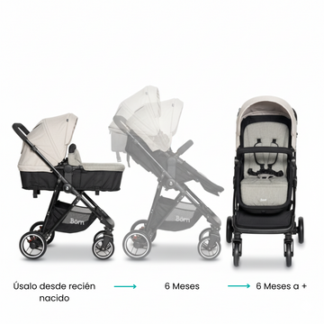 El coche Born está diseñado para acompañarte en cada etapa de la maternidad y paternidad, haciendo que cada paseo sea más que un simple traslado: se convierte en un momento especial de conexión con tu bebé. Con su diseño elegante y moderno, se adapta tanto a una caminata por el parque como a las rutinas diarias en la ciudad. Su estructura práctica y ligera ofrece la libertad de moverte sin complicaciones, mientras tu pequeño disfruta de un espacio cómodo y seguro.