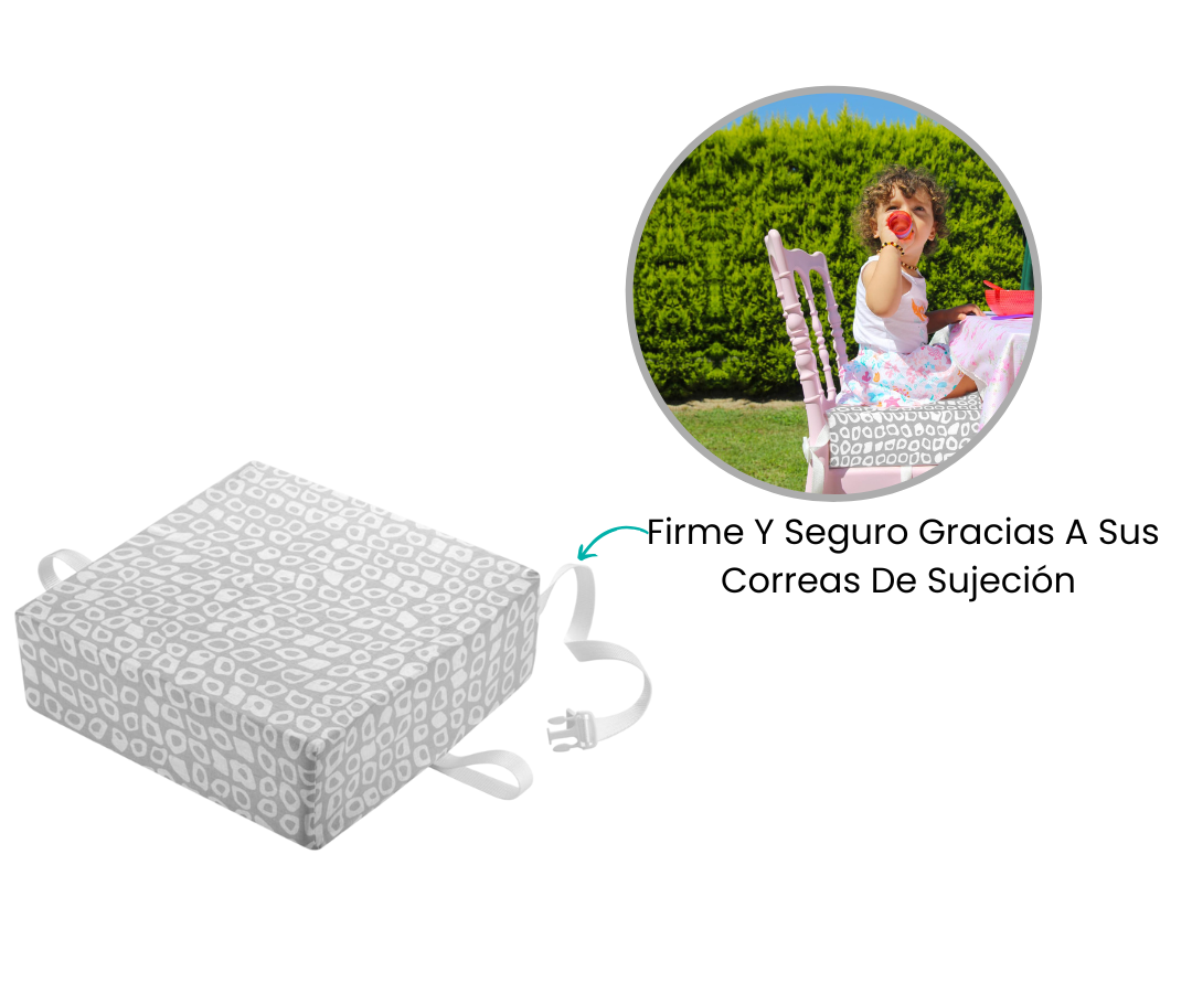 - Funciona como asiento elevador, ayudando a mantener una postura correcta y estable.