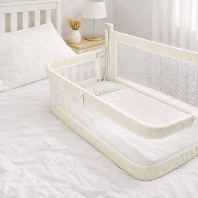 Dormir cerca de tu bebé fortalece el vínculo y brinda tranquilidad durante la noche. Esta cuna colecho permite mantener a tu pequeño a tu lado de forma segura, facilitando la lactancia nocturna y el descanso compartido sin renunciar a la comodidad de cada uno. Su diseño elegante en tonos neutros combina perfectamente con cualquier dormitorio moderno.