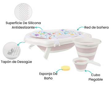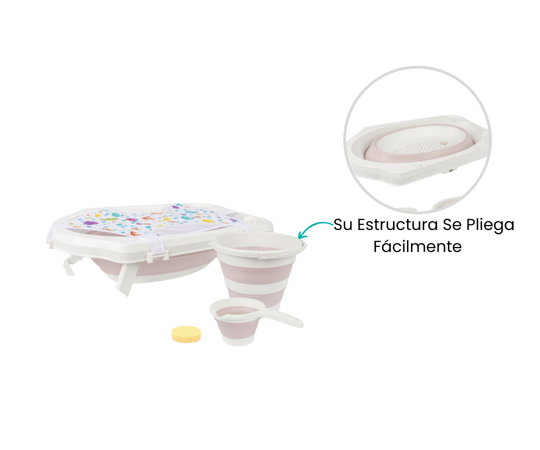 Combo Bañera Plegable 5 Pcs | Rosado Sevibebe