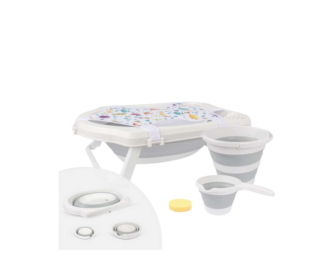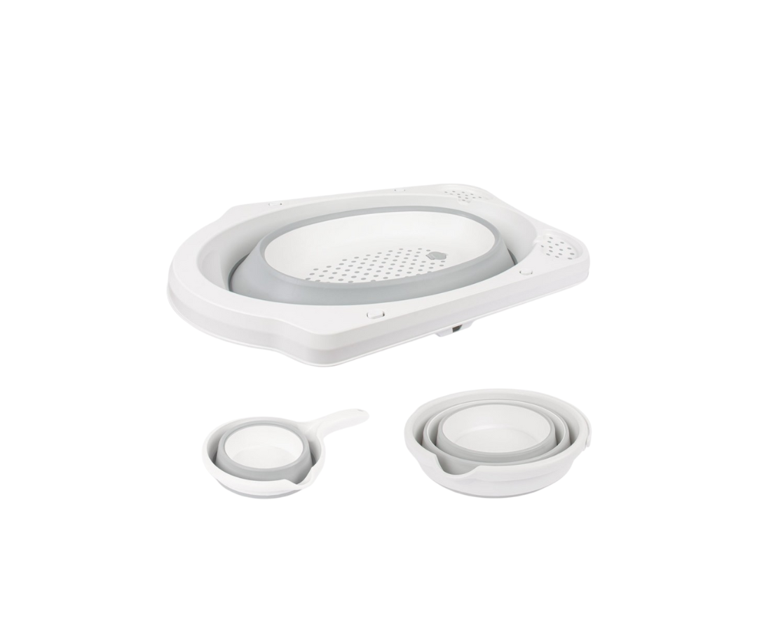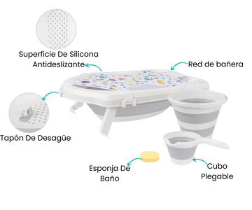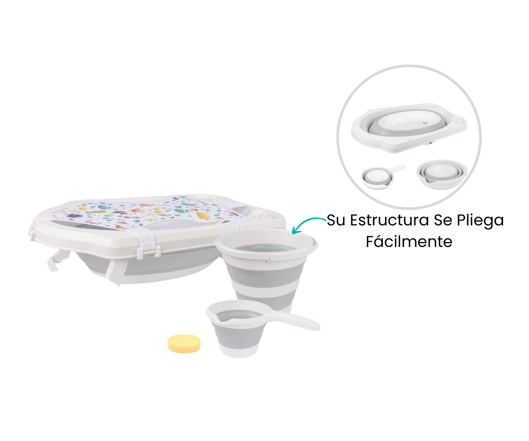 Combo Bañera Plegable 5 Pcs | Gris Sevibebe
