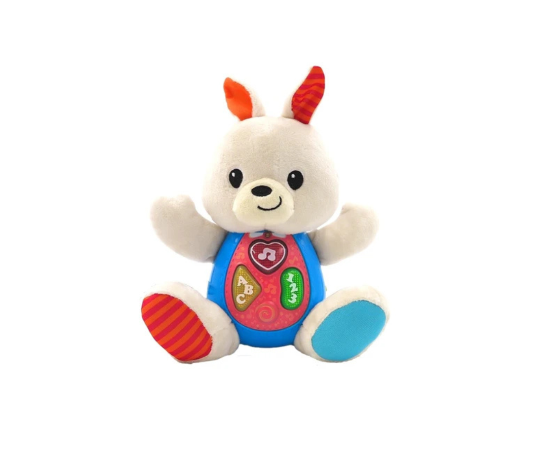 ¡Escucha cómo el conejito canta y enseña! El suave Sing 'N Learn Bunny deleita a tu pequeño con melodías encantadoras que hacen del juego una experiencia mágica. Cada canción incorpora conceptos educativos de forma divertida. Ideal para estimular el oído y el aprendizaje temprano.