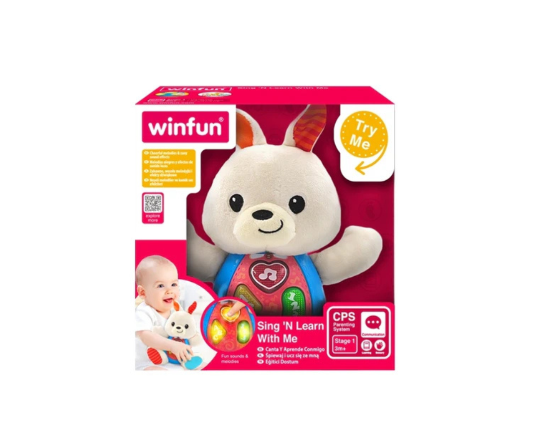 Conoce al Conejo Canta Y Aprende de Winfun, el adorable compañero de canto de tu pequeño. Su diseño suave, colores pastel y textura abrazable lo hacen irresistible. Combina la dulzura de un peluche con funciones interactivas que estimulan el aprendizaje. Ideal para acompañar al bebé en cada momento del día.
