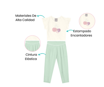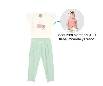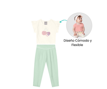 Confeccionado en materiales suaves y ligeros, este conjunto garantiza la comodidad que tu pequeña necesita para jugar, explorar o relajarse. La cintura elástica del pantalón asegura un ajuste perfecto sin apretar, permitiendo libertad de movimiento. Ideal para el día a día, este conjunto es la elección ideal para que las niñas luzcan a la moda y se sientan cómodas al mismo tiempo.