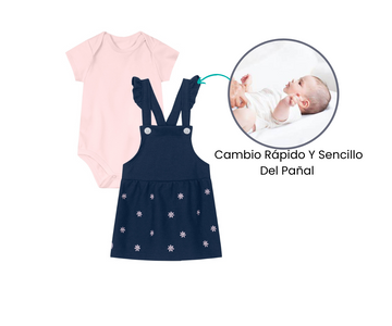 Este encantador conjunto de body y mini vestido es ideal para que tu pequeña luzca adorable en cualquier ocasión. El body, confeccionado en materiales suaves y transpirables, proporciona comodidad durante todo el día y es perfecto para la piel delicada de los bebés. Incluye prácticos broches en la parte inferior, lo que facilita vestir y cambiar a la niña con rapidez.