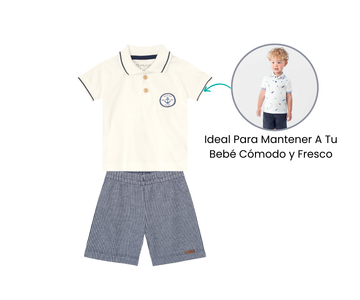 El conjunto es perfecto para los días de sol, combinando estilo y comodidad en cada detalle. La camiseta está diseñada con un suave tejido que permite una ventilación ideal, manteniendo fresco al bebé mientras juega.