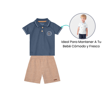 El conjunto es perfecto para los días de sol, combinando estilo y comodidad en cada detalle. La camiseta está diseñada con un suave tejido que permite una ventilación ideal, manteniendo fresco al bebé mientras juega.