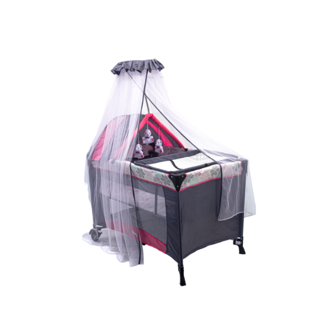 - Corral infantil con toldo protector en color rosado.