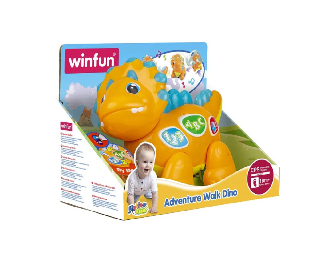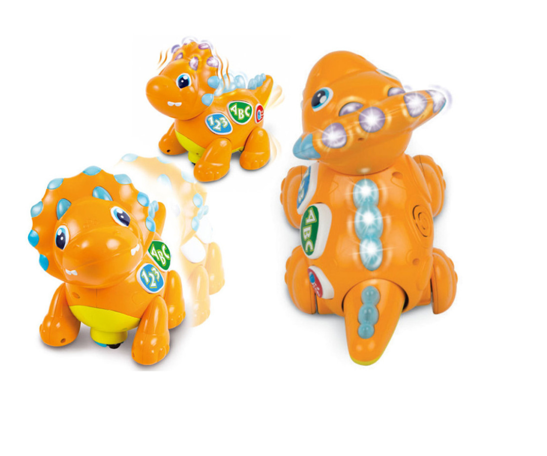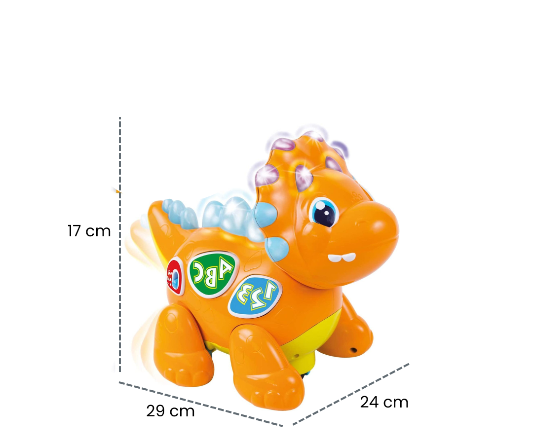Este divertido dinosaurio está lleno de sonidos musicales que captan la atención de tu pequeño desde el primer momento. Diseñado para desarrollar los sentidos, también mejora la coordinación ojo-mano mientras juega. Sus colores vivos y melodías lo convierten en el compañero perfecto.