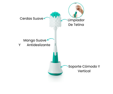 - El limpiador de detalles de silicona se flexiona en puntos estrechos en los pezones de biberones, tazas para sorber, piezas de extractor de leche y más.