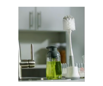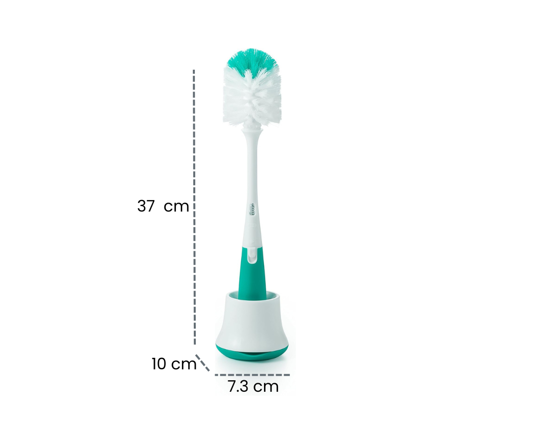 El cepillo para biberones OXO Tot está diseñado para facilitar la limpieza diaria de los biberones de tu bebé. Sus cerdas combinan firmeza y suavidad para eliminar residuos sin dañar el material. El cuello flexible permite llegar hasta las áreas más difíciles, adaptándose a botellas contorneadas.