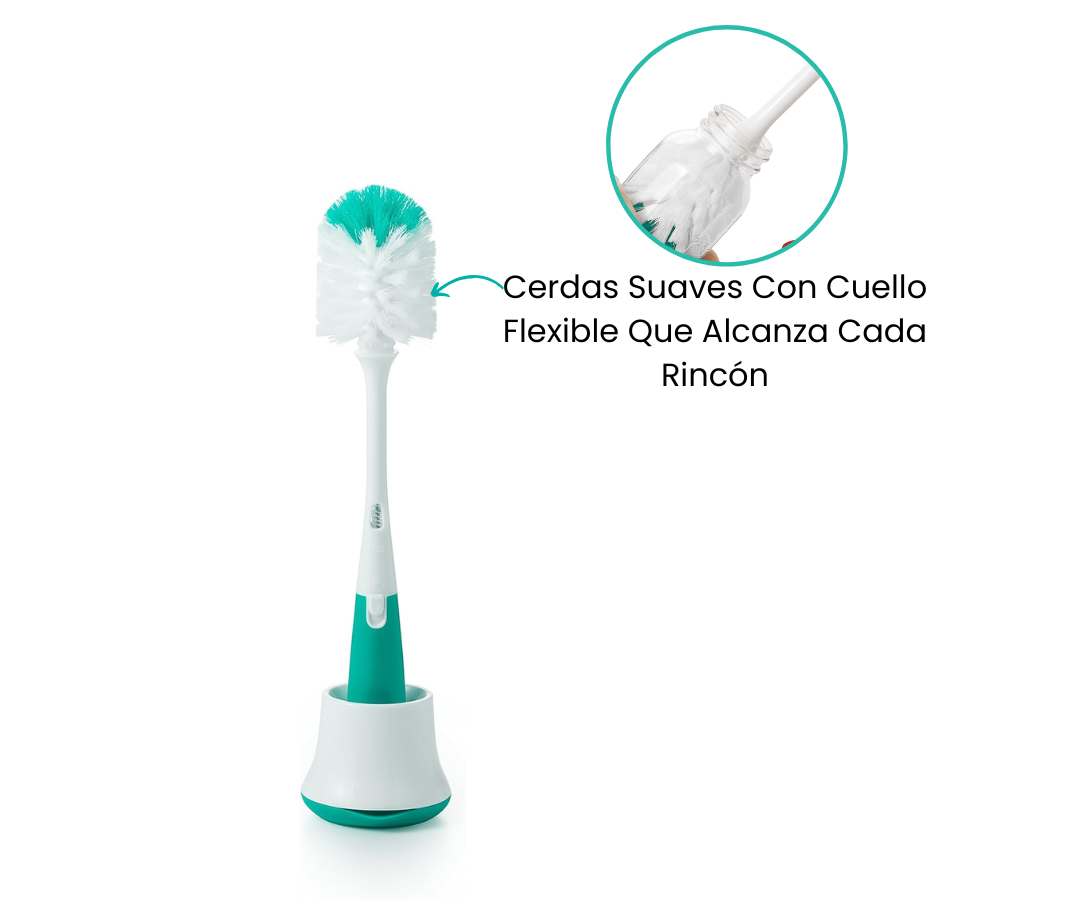 El cepillo para biberones OXO Tot combina cerdas suaves que cuidan el material con otras firmes para eliminar residuos difíciles. Su cuello flexible permite llegar fácilmente al fondo de botellas contorneadas. Garantiza una limpieza profunda y delicada al mismo tiempo. Ideal para mantener los biberones impecables todos los días.