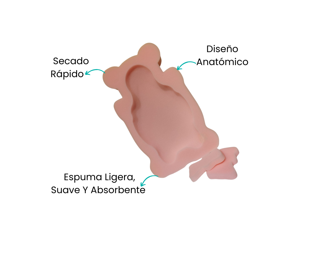 Fabricada en espuma ligera y absorbente, esta esponja mantiene al bebé acolchonado sobre una superficie agradable mientras se baña. Se puede colocar directamente dentro de la bañera o sobre el lavamanos, facilitando la rutina de higiene diaria. Su textura es delicada con la piel sensible, ofreciendo una experiencia de baño relajante y segura.
