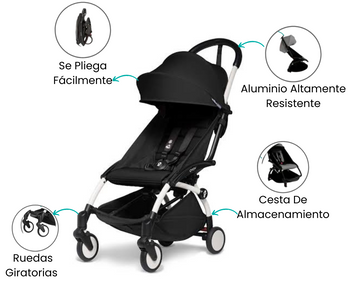 La silla de paseo YOYO se pliega y despliega con una sola mano, se puede llevar al hombro, cabe en cualquier lugar, se guarda fácilmente y viaja como equipaje de mano*