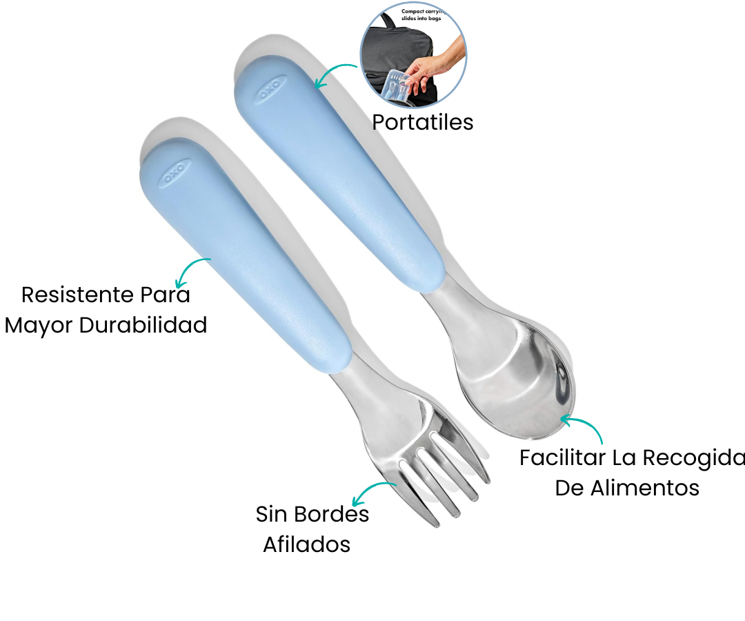 El juego de tenedor y cuchara TEAL ha sido meticulosamente diseñado para ofrecer máxima versatilidad en cualquier situación. Desde un relajante picnic al aire libre con tu bebé hasta preparativos escolares, este juego es tu compañero ideal en todas tus aventuras. Su diseño inteligente y práctico se adapta a tu estilo de vida activo, con forma ergonómica y tamaño adecuado para facilitar el manejo tanto para ti como para tu pequeño.