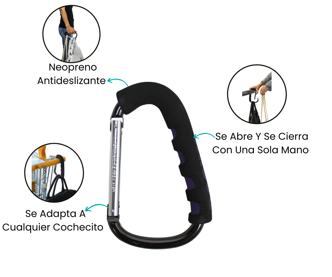 El gancho universal Dooky es la solución perfecta para mantener tus manos libres durante los paseos. Su diseño resistente permite colgar bolsos, mochilas o bolsas de compras con total seguridad. Se adapta fácilmente a cochecitos, sillas de paseo o carritos. ¡Ideal para hacer tus salidas más prácticas y organizadas!